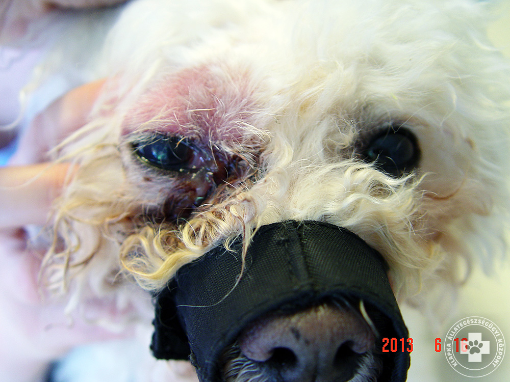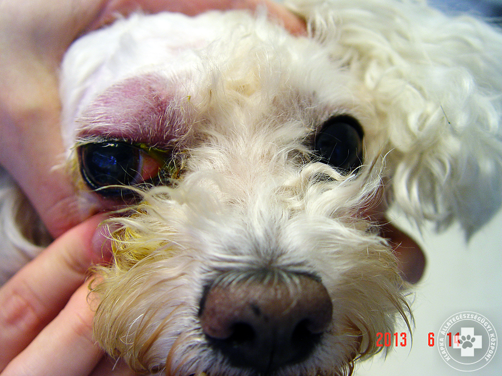 A tünetek szembetűnőek, hiszen az állat szeme „kidülled”, nagyobbnak tűnik (exopthalmus). Amennyiben ezen tünetek észlelhetők, mihamarabb javasolt állatorvos-szemész felkeresése. A szemkörüli szövetek duzzadtak, kipirultak. A kutya vagy macska sokszor étvágytalan és lázas, a száját nem engedi kinyitni, nem szívesen rág. Jellemző lehet még könnyezés és az állat pislogóhártyájának, másnéven harmadik szemhéjának előesése is.