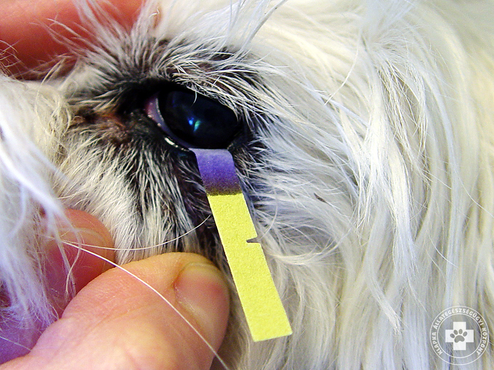 Szárazszem-betegség esetén azonban elsődlegesen a könnytermelés mértékét kell meghatározni. Erre szolgál a rendelőben könnyen, gyorsan elvégezhető Schirmer-könnyteszt, amelynek során egy festékanyaggal impregnált papírcsíkot helyezünk az alsó kötőhártyazsák középső – külső részébe. A felszaladó könny mennyisége a skáláról leolvasható. Hasonló elven működik a „phenol red thread” teszt is (lásd a könnytermelés mérése tájékoztatót). Ezen kívül vizsgáljuk még a szaruhártya állapotát, a hám esetleges folytonossági hiányait. Erre különböző festékanyaggal átitatott csíkokat használunk (ilyen a fluorescein/rose bengál/lissamin green tesztcsíkok).