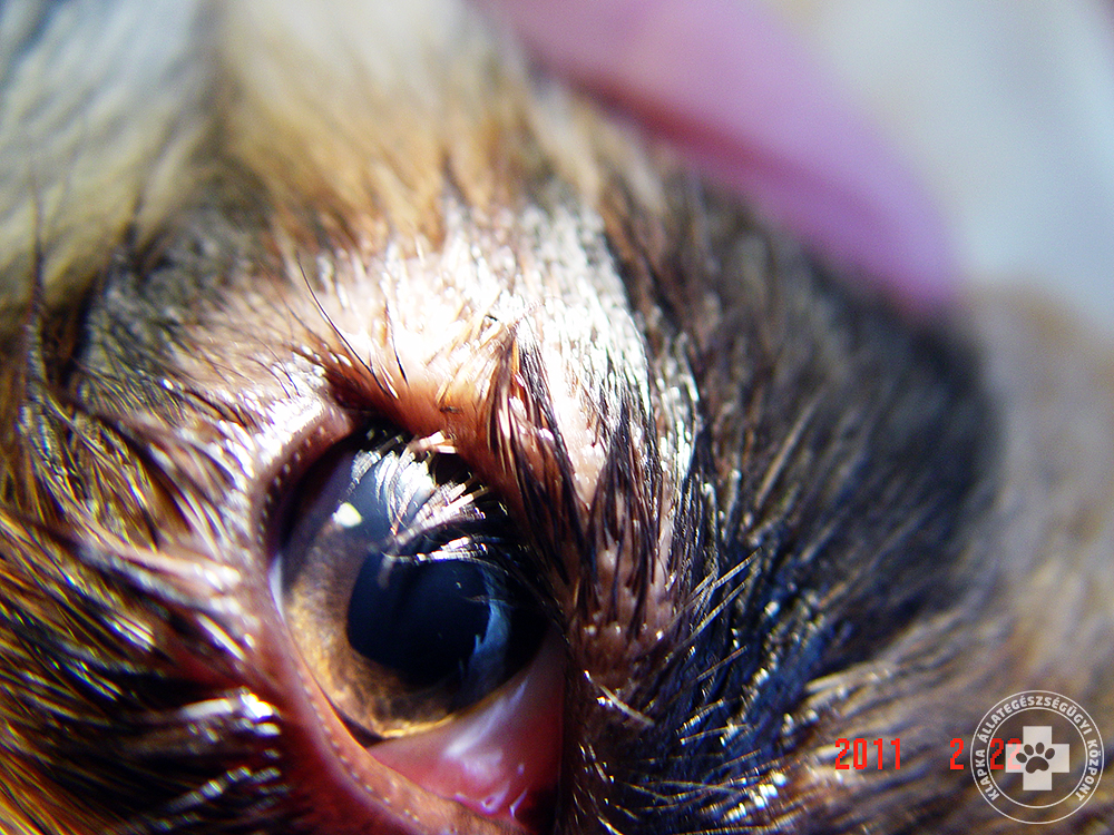 A szemhéjak rendellenes állása rendkívül sokféle lehet, a leggyakoribb ha a szemhéj (főként az alsó) befelé fordul. A befelé forduló szemhéj minden egyes pislogásnál irritálja a szaruhártyát, a szem legkülső rétegét, amely jelentős diszkomfort érzetet és fájdalmat okoz. Az állat hunyorog, szeme váladékozik, súlyos esetben a szaruhártya átszakadhat, amely esetén csak sürgős műtéttel menthető meg a szem.
